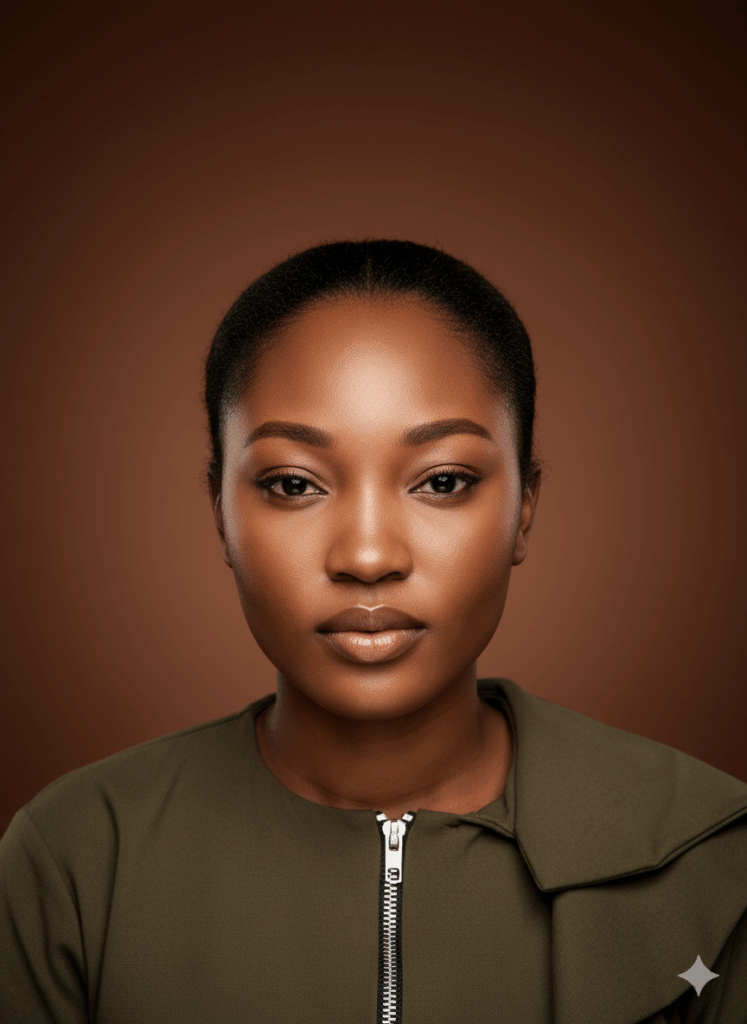 “Create a hyper-realistic professional studio portrait of the woman in the reference photo. Keep her facial identity, skin tone, and features exactly the same. She should be photographed in a high-end studio with cinematic soft lighting. The background should be a smooth gradient of warm brown tones with subtle shadows, giving the image a magazine-quality finish. The woman’s face should be perfectly sharp, with natural skin texture, smooth highlights, and soft shadows. Style her makeup to look flawless but natural—defined brows, subtle eyeliner, light contour, and plain glossy lips. Hair should appear neatly styled and well-defined, with no flyaways. The portrait should be cropped from the shoulders up, with a balanced composition and professional retouching that keeps her looking real, not over-edited. Make the final result look like a high-resolution studio photography session.”